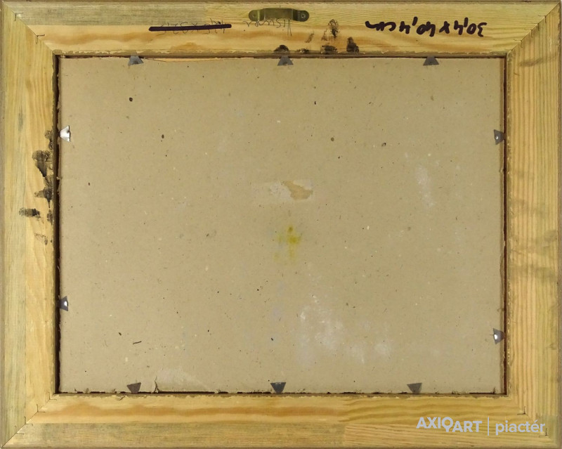 Olaj karton festmény üveglap mögött, paszpartuban, hibátlan aranyozott keretben. Akasztási lehetőséggel rendelkezik. Ajándékozható állapotban van.
