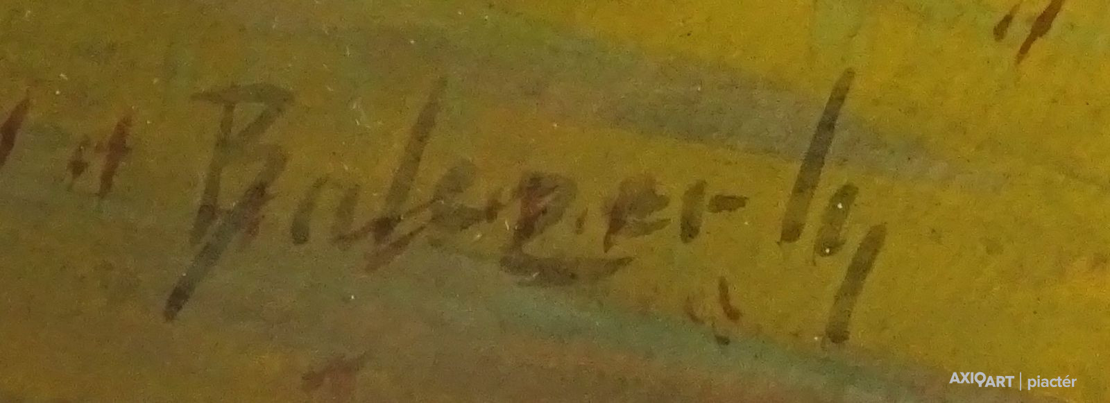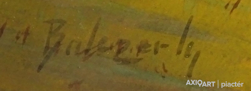 [FK0284/Z032] 25% ÁRENGEDMÉNY MINDEN TERMÉKÜNKRE Dec. 14-ig A kép mérete: 24,5 x 34,5 cm keret nélkül. Készült: Akvarell, Papír A kép Pécsi-Pilch Dezső (Pécs, 1888, Budapest, 1949) alkotása. Jelezve Jobbra lent "Sikonda, Pécsi Pilch 933." A festmény jó állapotban van. Keret: Restaurált A festmény bal alsó sarkában: Sikonda Magyar festők és grafikusok életrajzi lexikona I-II. Festő. Művészeti tanulmányait Budapesten és Münchenben végezte. Hazatérve "Szürkületkor" című festményével keltett figyelmet. Könnyed előadású, gazdag színű tájképeket és figurális műveket festett, de főleg csendéletképeivel aratott nagy sikert. 1932-ben önálló gyűjteményes tárlaton mutatta be munkáit, különben többnyire az UME keretén belül állította ki, mely egyesületnek egyben törzstagja is volt, s annak vezetésében elejétől fogva nagy szerepet játszott. Tanára, sokáig főtitkára volt a budapesti Képzőművészeti Főiskolának. Az Angolkisasszonyok templomába négy falképet festett. Fontosabb alkotásai: Kertben, Virágzó hegyoldal, stb. Képviselve a Magyar Nemzeti Galériában és több vidéki képtárban (Éber, ML, Új Idők Lexikona) Magyar festők és grafikusok életrajzi lexikona I-II. Műgyűjtők és kereskedők kézikönyve Festő. Művészeti tanulmányait Budapesten és Münchenben végezte. Hazatérve "Szürkületkor" című képével keltett figyelmet. Alakos, táj- és csendéletképeket állított ki, egyre inkább a Vaszary Jánostól közvetített franciás expresszionista stílusban. 1932-ben önálló gyűjteményes kiállításon mutatta be műveit, különben többnyire az UME keretén belül állított ki, mely egyesületnek törzstagja, s annak vezetésében elejétől fogva nagy szerepet játszott. Tanára és főtitkára volt a bp.-i Képzőművészeti Főiskolának. Az Angolkisasszonyok templomában négy falképet festett. (Éber, ML) Magyar festők és grafikusok adattára Budapesten, majd Münchenben végezte tanulmányait. Szürkületkor c. képével érte el első hazai sikerét. Főként világos színhatású tájképeket és csöndéleteket állított ki a Vaszary János közvetítésével átvett franciás expresszionizmus szellemében. A Képzőművészeti Főiskola tanára volt. 1932-ben önálló gyűjteményes kiállítást rendezett. - MÉL Művészeti lexikon I-IV. Festő. Előbb Bp.-en, majd Münchenben tanult. Hazatérve tájképeket és csendéleteket állított ki, egyre inkább a Vaszary Jánostól közvetített franciás expresszionista stílusban. A Képzőművészeti Főiskola tanára volt. 1932-ben önálló gyűjt. kiállításon mutatta be műveit. Az Angolkisasszonyok templomában négy falképet készített. Művészeti lexikon I-II. Festő. Tanulmányait Budapesten és Münchenben végezte s hazatelepedve Szürkületkor c. képével keltett figyelmet. Figurális és tájképei mellett főleg csendéleteivel keltett figyelmet. Festői modora világos, színes, posztimpresszionisztikus. Kollektív kiállítása volt 1932-ben, különben többnyire az UME keretében állít ki, amely egyesületnek törzstagja s annak vezetésében elejétől fogva nagy szerepet játszott. Tanára és főtitkára a képzőművészeti főiskolának.