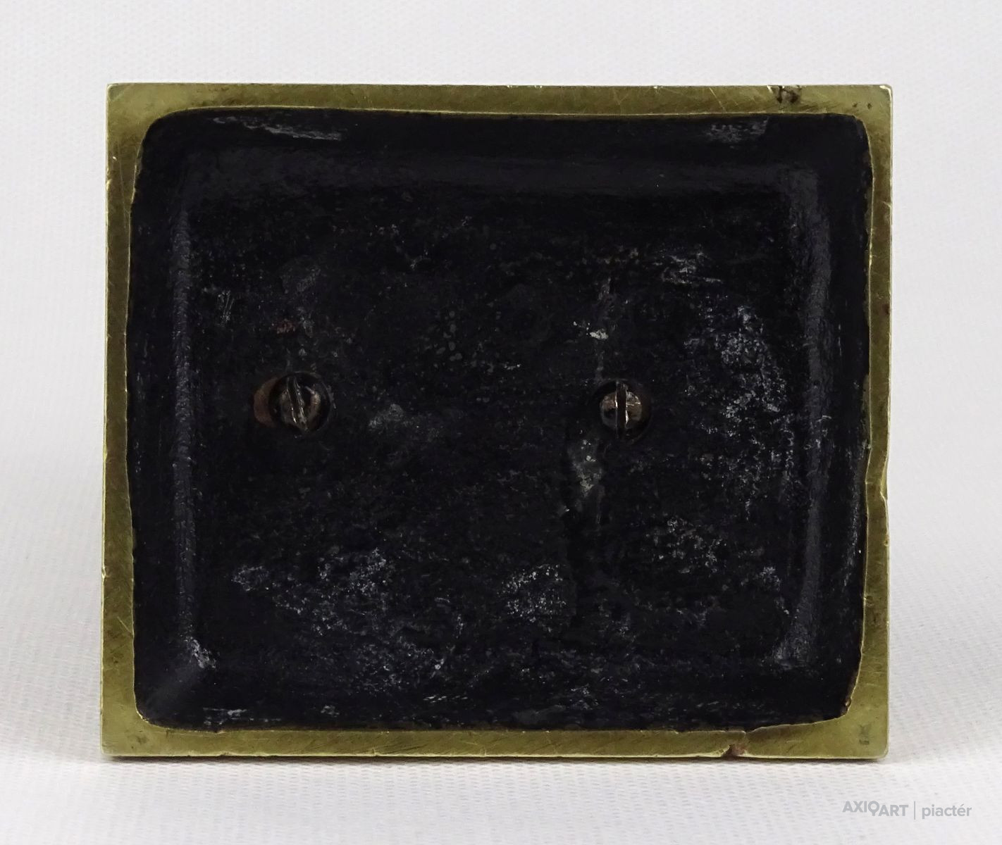 [1I390/X026] Hibátlan állapotú, jelzett bronz plakett szép bőrdíszműves bőr tokban. Elején plasztikus virágdíszítés mellett jelzés: KL Hátoldalán felirat: A KISZ. KIVÁLÓ PROPAGANDISTÁJA Súly: 0.485 kg Kutas László szobrász Budapest, 1936-04-17 Szerző: Matits Ferenc Gimnazistaként Sopronban Ágoston Ernő szabadiskolájában sajátította el a rajzművészet alapismereteit, majd 1954 és 1960 között a Magyar Képzőművészeti Főiskolára járt, ahol Gyenes Tamás és Pátzay Pál voltak a mesterei. Érzékletes mintázás, jó formaérzék, szellemes komponálás, választékos anyaghasználat tünteti ki plasztikai működését. A realista hagyományokra épülő, egyéni stílusát tükröző kő és bronz köztéri szobrokon kívül narratív kisplasztikákat, érmeket készít. A Magyar Nemzeti Bank pályázatain 11 alkalommal nyert emlékpénz készítésére megbízást. A firenzei Giorgio Vasari Nemzetközi emlékérem pályázaton 1974-ben I. díjat kapott, a Sportérem pályázaton 1975-ben II. és III. díjat, az Ezüstgerely pályázaton 1976-ban különdíjat érdemelt ki. 1979-ben a ravennai Dante Biennálé ezüst érmét, 1991-ben és 1995-ben pedig a soproni Országos Éremművészeti Biennálén Roisz Vilmos-díjat nyert. 1990 óta zsűritag a Ravennai Kisplasztikai Dante Biennálén. Figurális kisplasztikái egy-egy történetet mesélnek el. Az alakok kifejező megmintázása, környezetbe helyezése, dinamikus megfogalmazása elgondolkodásra késztetnek. Alkotásai népszerűek a hazai, valamint külföldi gyűjtők körében és szereztek a művésznek világhírnevet. Irodalom (kat. bev., Országos Széchenyi Könyvtár Galéria, 1994) ESZES A.: Otthon útközben. Műteremlátogatás ~nál, Anna, 1994/7. KOVÁCS P.: A tegnap szobrai, Szombathely, 1992 VEKERDY T.: ~ és szobrai, Várhely, 1997/3. Film BAYER I.: Művészportré, Civil Kurázsi Műsor, MTV, 1994-5. Egyéni kiállítások Egyéni kiállítások 1976 • Festőterem, Sopron • Haydn Művelődési Ház, Fertőd 1983 • Bank für Gemeinwirtschaft, Regensburg • Haydn Művelődési Ház, Fertőd • Munkás Művelődési Központ, Paks 1990 • Galerie Meerbusch, Düsseldorf 1993 • Városi Kórház Galéria, Grevenbroich (D) • Galerie Greve, Hamburg 1996 • G. P. Breughel, Venlo (gyűjt.) 1998 • Galéria, Tamási. Válogatott csoportos kiállítások Válogatott csoportos kiállítások Őszi Tárlatoknak és 1977-1999 • Országos Éremművészeti Biennáléknak. 1977-től vett részt a FIDEM nemzetközi kiállításain. A ravennai Dante Biennálén1975-ben, 1977-ben és 1979-ben vett részt. 1964 • Vásárhelyi Tárlatok 1954-1963, Magyar Nemzeti Galéria, Budapest 1968 • Az új Kecskeméti Művésztelep, Katona József Múzeum, Kecskemét 1970 • Kiállítás a Szakszervezetek Országos Tanácsa képzőművészeti pályázatára érkezett alkotásokból, Magyar Nemzeti Galéria, Budapest 1972 • 6. Balatoni Nyári Tárlat, Balatoni Múzeum, Keszthely 1974 • Vásárhelyi Tárlatok 1964-1973, Magyar Nemzeti Galéria, Budapest • G. Vasari nemzetközi Érembiennálé, Firenze 1976 • Balatoni Nyári Tárlat, Balatoni Múzeum, Keszthely 1979 • VI. Országos Kisplasztikai Biennálé, Pécs 1982 • Magyar mesterek, G. P. Breughel, Amszterdam 1990 • Ágoston Ernő tanítványai, Villamosipari Szakközépiskola Galéria, Sopron 1991 • Soproni Képes Céh Kiállítás, Collegium Hungaricum, Bécs • Soproni Képes Céh Kiállítás,Lajtaújfalu [Potzneusiedl] 1992 • Képes Céh Kiállítás, Lábasház, Sopron 1995 • Névjegy-érem kiállítás, OTP Galéria, Budapest 1996 • Képes Céh Kiállítás, Lábasház, Sopron. Művek közgyűjteményekben Művek közgyűjteményekben Királyi Éremtár, Stockholm Liszt Ferenc Múzeum, Sopron Városháza Gyűjteménye, Firenze Windsor Palota Gyűjteménye.  Forrás: artportal.hu