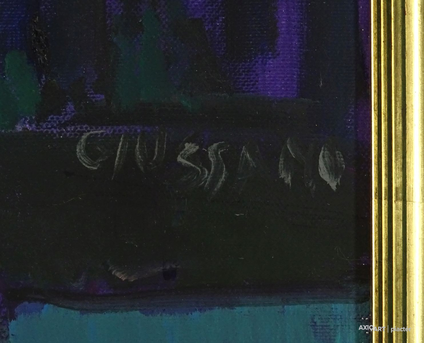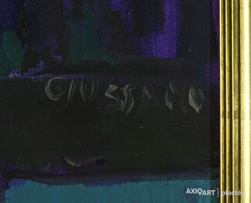 [1K586/077] Olaj vászon festmény aranyozott keretben. Akasztási lehetőséggel rendelkezik. Jelzés jobbra középen: GIUSSANO Magasság: 70 cm Szélesség: 60.5 cm Súly: 1.905 kg