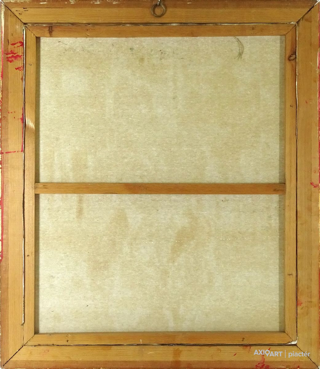 [FK0037/Z018] A kép mérete: 50 x 70 cm keret nélkül. Készült: Olaj, Vászon A kép Paizs László (Szentpéterúr, 1935) alkotása. Jelezve Jobbra lent "P. L." A festmény jó állapotban van. Keret: Ép A festmény hátoldalán a Képcsarnokvállalat címkéje található. Magyar festők és grafikusok életrajzi lexikona I-II. Festő. Tanulmányait a budapesti Iparművészeti Főiskolán végezte 1959-ben. Z. Gács György, Rákosy Zoltán és Szentiványi Lajos növendéke volt. A '60-as évek első felében hagyományosabb felfogású olajképeket festett, mozaikokat, freskókat, utóbb a pop-art körébe tartozó, a francia Arman munkáival rokon műveket alkotott. 1961 óta kiállító művész. Egyéni (Fényes Adolf Terem, Csók Galéria, Műcsarnok, Magyar Nemzeti Galéria, Halászbástya, Bástya Galéria, Vigadó Galéria, Budapest Galéria, Győr, Szombathely, Szeged, Zalaegerszeg, Duisburg, Aix-en-Provence, stb). és vegyes (Ernst Múzeum, Műcsarnok, Óbuda Galéria, Magyar Nemzeti Galéria, Csók Galéria, Vigadó Galéria, Székesfehérvár, Kaposvár, Pécs, Hódmezővásárhely, Firenze, Milano, Padova, Nápoly, Velence, Düsseldorf, Aachen, Genf, stb) tárlatokon vett részt. 1980-ban Munkácsy-díjjal jutalmazták, 1988-ban Érdemes Művész kitüntető elismerésben részesült. Munkáit őrzi a Magyar Nemzeti Galéria, a Fővárosi Képtár, a szombathelyi képtár, a pécsi Janus P. Múzeum, a székesfehérvári István Király Múzeum és a dunaszerdahelyi Kortárs Magyar Galéria. (H.B.: Műv, 1972/4, K.Gy.: Műv. 1977/2, K.G.: Műv. 1978/10, M.L.: Műv, 1983/5, R.G.: Műv, 1987/9, Sz.Gy.: Új Műv. 1995/4, MK) Magyar festők és grafikusok életrajzi lexikona I-II. Műgyűjtők és kereskedők kézikönyve Festő. Tanulmányait a bp.-i Iparművészeti Főiskolán végezte. Mozaikokat ferskókat, utóbb a pop-art körébe tartozó, a francia Arman műveivel rokon műveket alkotott. Mozaikok: a Szegedi Megyei Tanács, a Pécsi Óvoda, a Gödöllői Agrártudományi Egyetem. Freskók: Budapest - Csatárka úti Gyermekotthon. 1971-ben a Fényes Adolf Teremben volt kiállítása, 1983-ban pedig a szegedi Móra Ferenc Múzeumban nagyszabású tárlatokon mutatta be munkáit. 1988-ban érdemes művész kitüntető elismerésben részesült. (MK) Magyar festők és grafikusok adattára Az Iparművészeti Főiskolán végzett 1959-ben. Mozaikokat (Szeged, Megyei Tanács; Pécs, Óvoda; Gödöllő, Agrártudományi Egyetem), freskókat (Budapest, Csatárka úti Gyermekotthon), újabban a pop art körébe tartozó, a francia Arman műveivel rokon műveket alkotott. 1971-ben a Fényes Adolf Teremben nyílt kiállítása. 1983 februárjában a szegedi Móra Ferenc Múzeumban megrendezett nagyszabású tárlaton mutatta be alkotásait. 1988-ban érdemes művész kitüntető elismerésben részesült. - MK Művészeti lexikon I-IV. (Szentpéterur, 1935. dec. 26.- ): festő. Az Iparművészeti Főiskolán 1959-ben végzett Rákosy Zoltán, Z. Gách György és Szentiványi Lajos növendékeként. Épületdiszítő mozaikokat, (Szeged, Megyei Tanács, 1961; Pécs, Óvoda, 1964), műanyagfreskókat (Bp., Csatárka úti Gyermekotthon, 1964) és gobelinterveket készít. Kortárs magyar művészeti lexikon I-III. Festő, szobrász, grafikus. 1959: MIF, mesterei: Z. Gács György, Rákosy Zoltán, Szentiványi Lajos. 1980: Munkácsy-díj; 1988: érdemes művész. Főiskolás éveinek második felében, majd azt követően számos murális munka kivitelezésében vett részt, Fónyi Géza, Konecsni György, Z. Gács György, Rákosi Zoltán és Domanovszky Endre mellett dolgozva. A 60-as évek első felének hagyományosabb fölfogású olajképeket festett. 1964-ben a Velencei B.-n megismerkedett az amerikai pavilonban a pop art Európában akkor még újnak számító törekvésével, és részben ez inspirálta, hogy 1967-ben textil, fém, bőr anyagú "varrottas" képeket küldjön az FKS éves tárlatára; a megnyitó előtt többek között az ő munkáit is eltávolították a falról. A 70-es években pop art-os objekteket (A trónörököspár politikai gyilkosság áldozata lett, 1970, plexiüveg, újság, szarvasbogarak), majd konstruktív, átlátszó plexiüveg plasztikákat készített belső fénytörő határfelületekkel. A 80-as években készültek az anyagában színezett, konstruktív, nagyméretű poliészter szobrai, majd színes poliészter táblaképeket alkotott, mesterségesen roncsolt felületekkel, mintha régészeti leletek vagy atomtámadás utáni festmény-szurrogátumok lennének. Ekkor kezdett organikus plaszikájú bronzszobrokat is mintázni. A 90-es években, a táblaképek és szobrok mellett nagyméretű, egyedi grafikákat készített, formavilágában némileg a roncsolt táblaképekből kiindulva, de szinte kizárólag az emberi alakból elvonatkoztatott torzókat megjelenítve. Ek: 1966: Művészklub, Győr; 1971: Fényes A. T.; 1972: Bercsényi 28-30 G.; 1973: BME B-épület; 1976: Csók G.; 1977: G. Hildebrandt, Duisburg (NSZK); 1979: Bástya G., Halászbástya; Helyőrségi Műv. H., Nagyatád; József A. Műv. Közp., Szeged; Göcsej M., Zalaegerszeg; 1982: Bezzegh G., Küsnacht (CH); 1983: Móra F. M., Szeged; 1987: Műcsarnok (kat.); MNG; 1988: Pandora G., Badacsonytomaj; 1989: Parktheatter, Iserlohn (NSZK); Qualitas G.; Hevesi S. Színház, Zalaegerszeg; 1990: Vasarely Fondation (Ferdinánd Judittal, Fóth Ernővel), Aix-en-Provence (FR); 1994: Vigadó G.; 1997: Pest Center G.; 1998: Budapest G. (kat.); 1999: Pest Center G. (kat); G. Arcis, Sárvár; MMA, Bp.; 2001: SZK, Szhely; Ernst M. (kat.) Vcsk: 1961, 1964, 1966: FKS, Ernst M.; 1962: 9. Magyar Képzőműv. kiállítás, Műcsarnok; 1967: Mai magyar festészet, Új-Delhi; 1969: Vas megyei művészek, Savaria M., Szhely; V. Orsz. Grafikai B., Miskolc; 1971: Új művek, Műcsarnok; 1972: Fiatal művészek Budapestről. Likovni Salon, Újvidék (YU); 1972, 1973: Balatonboglár