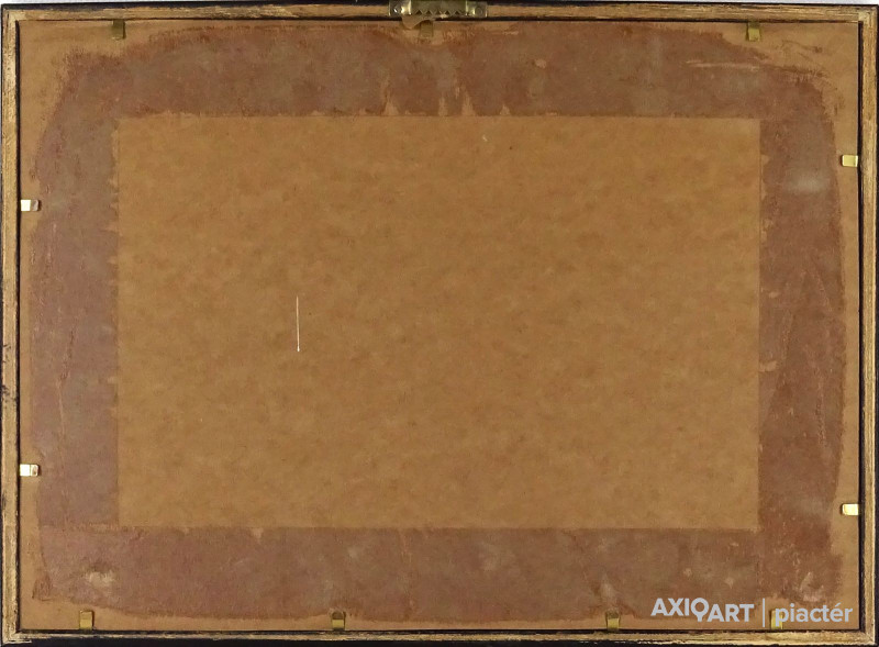 [FKA862/Z026] A kép mérete: 33 x 24 cm keret nélkül. Készült: Akvarell, Papír A kép Vinkler László (Szabadka, 1912, Szeged, 1980) alkotása. Jelezve jobbra lent "Vinkler László" A festmény jó állapotban van. Keret: Paszpartúban Magyar festők és grafikusok életrajzi lexikona I-II. Festő. Tanulmányait Lápossy-Hegedűs Géza irányításával kezdte. A budapesti Képzőművészeti Főiskolán Glatz Oszkár és Karlovszky Bertalan tanítványa volt. 1935-ben diplomázott. 1933-ban a főiskola jubileumi tárlatán a "Nagymamám" című alkotásával elnyerte a Balló-díjat. 1935-1936-ban római ösztöndíjas volt, és a Collegium Hungaricum-ban töltött nyolc hónapot. Szorgalmasan dolgozott, közben tanulmányokat folytatott az Accademia delle Belle Arti freskó-osztályán, Ferazzi irányítása mellett. Az itt készült "Maria Surigia" című képmását 1936-ban a Collegium Hungaricum kiállításán mutatta be, amelyet az olasz állam vásárolt meg. A "Római szobrásznő" című képe 1937-ben elnyerte a Jellinek-díjat. Az alkotás jelenleg a Magyar Nemzeti Galéria tulajdona. Számos kelet- és nyugat-európai országban járt tanulmányúton. 1931-től szerepelt hazai és külföldi bemutatókon. Egyéni kiállításai voltak Szegeden (1942, 1958, 1963, 1972), az Ernst Múzeumban (1959), Olaszországban (1961), Jugoszláviában (1968). Nagyobb anyaggal szerepelt a szegedi művészek 1967-es Magyar Nemzeti Galéria-béli kiállításán. 1932-ben Balló-díjat, 1937-ben Fényes Adolf-díjat kapott, 1972-ben Szeged város alkotói-díját, 1979-ben a Szegedi Nyári Tárlat díját nyerte el. Éveken keresztül (tizenöt év megszakítással) a szegedi Tanárképző Főiskola rajzi tanszékének vezetőjeként működött. Korábban protréfestőként volt ismeretes. Karlovszky mellett a rajz kultuszára és a csendéleti formalátásra kapott indíttatásokat, később Glatz hatott rá, így a rajzos analizálás helyett a művész a szélesebb festőiségre tért át. A naturalizmussal elvi szakítást jelentő harmadik stílusát a novocento jelképes, színesen dekoratív szellemében alakította ki. Jeles grafikus volt. Több irodalmi művet illusztrált. Monumentális feladatokkal is foglalkozott (freskók a Petőfi-telepi templomban stb.). 1957-ben a városban végzett művészi tevékenysége elismerésül a szegedi Collegium Artium Képzőművészeti tagozata vezetőjévé választotta. Műveinek jelentős részét a szegedi Móra F. Múzeum őrzi. (PZ-SzMF,D.E.: Műv. 1927/6, ML, Sz.Z.: Műv. 1973/1, Műv. 1982/10. D.F.Zs.: Műv. 1973/8.) Magyar festők és grafikusok életrajzi lexikona I-II. Műgyűjtők és kereskedők kézikönyve Festő. Tanulmányait Lápossy-Hegedűs Géza irányításával kezdte. A budapesti Képzőművészeti Főiskolán Glatz Oszkár és Karlovszky Bertalan tanítványa volt. 1931 óta kiállító művész. 1933-ban a főiskola jubileumi kiállításán a "Nagymamám" c. festményével elnyerte a Balló-díjat. 1935-36-ban római ösztöndíjas volt. Az Accademia della Bella Arti freskó-osztályán, Ferazzi mester mellett folytatott tanulmányokat. Az itt készült "Maria Surigia" c. portréját 1936-ban a Collegium Hungaricum kiállításán mutatta be, amelyet az olasz állam vásárolt meg. A "Római szobrásznő" c. képe 1937-ben elnyerte a Jellinek-díjat. A mű a MNG tulajdona. Több kelet- és nyugat-európai országban járt tanulmányúton. Egyéni kiállításai voltak Szegeden (1942, 1958, 1963, 1972), az Ernst Múzeumban (1959), Olaszországban (1961), Jugoszláviában (1968). Nagyobb anyaggal szerepelt a szegedi művészek 1967-es MNG-beli kiállításán. 1937-ben Fényes Adolf-díjat, 1972-ben elnyerte Szeged város alkotói-díját, 1979-ben a Szegedi Nyári Tárlat díját. Ezen kívül művészpedagógusi és alkotói tevékenysége elismeréseként még számos kitüntetéssel és díjjal jutalmazták. Hosszabb ideig a szegedi Tanárképző Főiskola rajztanszékének vezetőjeként tevékenykedett. Korábban arcképfestőként volt ismeretes. Karlovszky mellett a rajz kultuszára és a csendéleti formalátásra kapott indíttatásokat, később Glatz Oszkár hatott rá és a rajzos analizálás helyett a szélesebb festőiségre tért át. A naturalizmussal elvi szakítást jelentő harmadik stílusát a novocento jelképes, színesen dekoratív szellemében alakította ki. Jeles grafikus volt. Számos irodalmi művet illusztrált. Monumentális feladatokkal is foglalkozott. (freskók a Petőfi-telepi templomban, stb). (PZ-SzMF,ML,Sz.Z.: Műv.-1982/10) Magyar festők és grafikusok adattára Művészeti tanulmányait Lápossy-Hegedűs Géza irányításával kezdte, majd a Képzőművészeti Főiskolán Karlovszky Bertalan és Glatz Oszkár növendékeként fejezte be 1935-ben. 1931 óta kiállító művész. 1933-ban a főiskola jubileumi kiállításán a Nagymamám c. festményével elnyerte a Balló-díjat. A diploma megszerzését követően 1935-1936-ban római ösztöndíjas. Az itt készült Maria Surigia c. portréját az olasz állam megvásárolta. A Római szobrásznő c. képe 1937-ben elnyerte a Jellinek-díjat, s amelyet ma az MNG őriz. Számos kelet- és nyugat-európai országban megfordult tanulmányúton. Egyéni kiállításai voltak Szegeden (1942, 1958, 1963, 1968, 1972), az Ernst Múzeumban (1959) és Dunaújvárosban (1977), illetve külföldön Olaszországban (1961) és Jugoszláviában (1968). Nagyobb anyaggal szerepelt a szegedi művészek 1967-ben MNG-beli bemutatóján. 1972-ben elnyerte Szeged város alkotói díját és 1979-ben a Szegedi Nyári Tárlat díját. Hosszabb időt töltött a Szegedi Tanárképző Főiskola rajztanszékének élén. Emlékkiállítását 1982-ben a szegedi Móra Ferenc Képtárban és a MNG-ban rendezték meg. Karlovszky mellett a rajz kultuszára és a csöndéleti formalátásra kapott indíttatásokat, később Glatz hatott rá és a ra