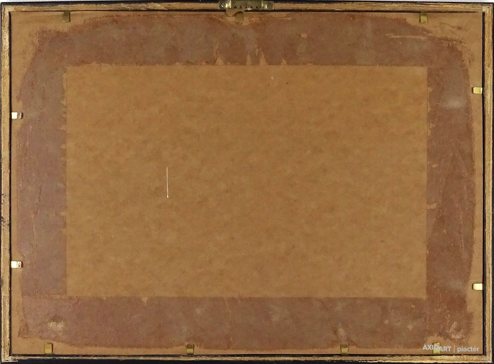 Papír akvarell festmény üveglap mögött, paszpartuban, fekete színű keretben. Akasztási lehetőséggel rendelkezik.