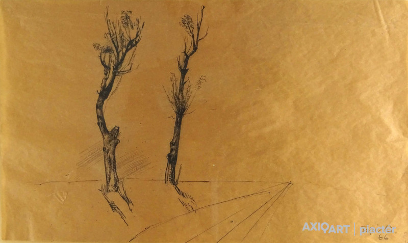 [1Y037/144] Papír tusrajz üveglap mögött, vékony léckeretben. Azonnal falra akasztható, ajándékozható állapotban. Jelezve jobbra lent: FEJÉR CS. '66 Magasság: 39.5 cm Szélesség: 60 cm Súly: 1.395 kg Fejér Csaba festő Karcag, 1936-03-25 Elhalálozott: Hódmezővásárhely, 2002. szeptember 17. 1954-1959: Magyar Iparművészeti Főiskola, díszítőfestő szak, mesterei: Z. Gács György, Rákosi Zoltán. 1962-1965: Derkovits-ösztöndíj; 1966: a XIII. Vásárhelyi Őszi Tárlat Tornyai-plakettje; 1968: Koszta József-érem, Szentes; 1970: a Római Magyar Akadémia ösztöndíja; 1971: a VII. Szegedi Nyári Tárlaton Szeged város díja; 1974, 1976: a Hatvani Tájképbiennálé közönségdíja; 1986: a Csongrád megyei Tanács alkotói díja. Hódmezővásárhelyt él. Az alföldi realisták örökségét etikai alapon felújító vásárhelyi iskola második nemzedékének prominens képviselőjeként a sorsfordulójához érkezett paraszti világ azon pillanatáról ad sajátos röntgenfelvételt, amikor a régi és az új küzdelme már eldőlt, s az egykori rideg életforma már csak töredékeiben, a külsőségek, ill. az emlékek szintjén él tovább. Verista szemléletmódja, s ezt híven tolmácsoló dokumentarista stílusa egyszerre tükröz megértést és kritikát, szenvedélyes tettvágyat és objektív kívülállást, az értékek relatív voltából adódó kétkedést és türelmes, szívós bizonyosságkeresést. Mindezt két szín, a szürke és a barna sokhangú regiszterén, lebilincselő mívességgel, a gesztusfestészet eszközbeli eredményeinek egyéni asszimilálásával adja elő. Irodalom  képei előtt, Művészet, 1970/5. SZUROMI P.: ~ vak hordárja, Hevesi Szemle, 1979/1. KOVÁCS F.: ~ festményei, Művészet, 1981/2. TASNÁDI A.: Megvallatott rekvizitumok, in: Gondolatok a képtárban, Miskolc, 1966. Egyéni kiállítások Egyéni kiállítások 1972 • Műcsarnok, Budapest • TV-Galéria, Budapest • Gulácsy Terem, Szeged 1975 • Magyar Intézet, Szófia 1980 • Csontváry Terem, Pécs (kat.) 1982 • Festőterem, Sopron. Válogatott csoportos kiállítások Válogatott csoportos kiállítások knak -, valamint a magyar művészet külföldi bemutatóinak • szerepelt a vásárhelyi iskola budapesti retrospektív kiállításain • 1964 • Vásárhelyi Tárlat 1954-1963, Magyar Nemzeti Galéria, Budapest 1974 • Vásárhelyi Tárlat 1964-1973, Magyar Nemzeti Galéria, Budapest 1979 • A hódmezővásárhelyi Őszi Tárlatok negyedszázados jubileuma alkalmából rendezett retrospektív kiállítás, Műcsarnok, Budapest. Művek közgyűjteményekben Művek közgyűjteményekben Tornyai János Múzeum, Hódmezővásárhely. Forrás: artportal.hu