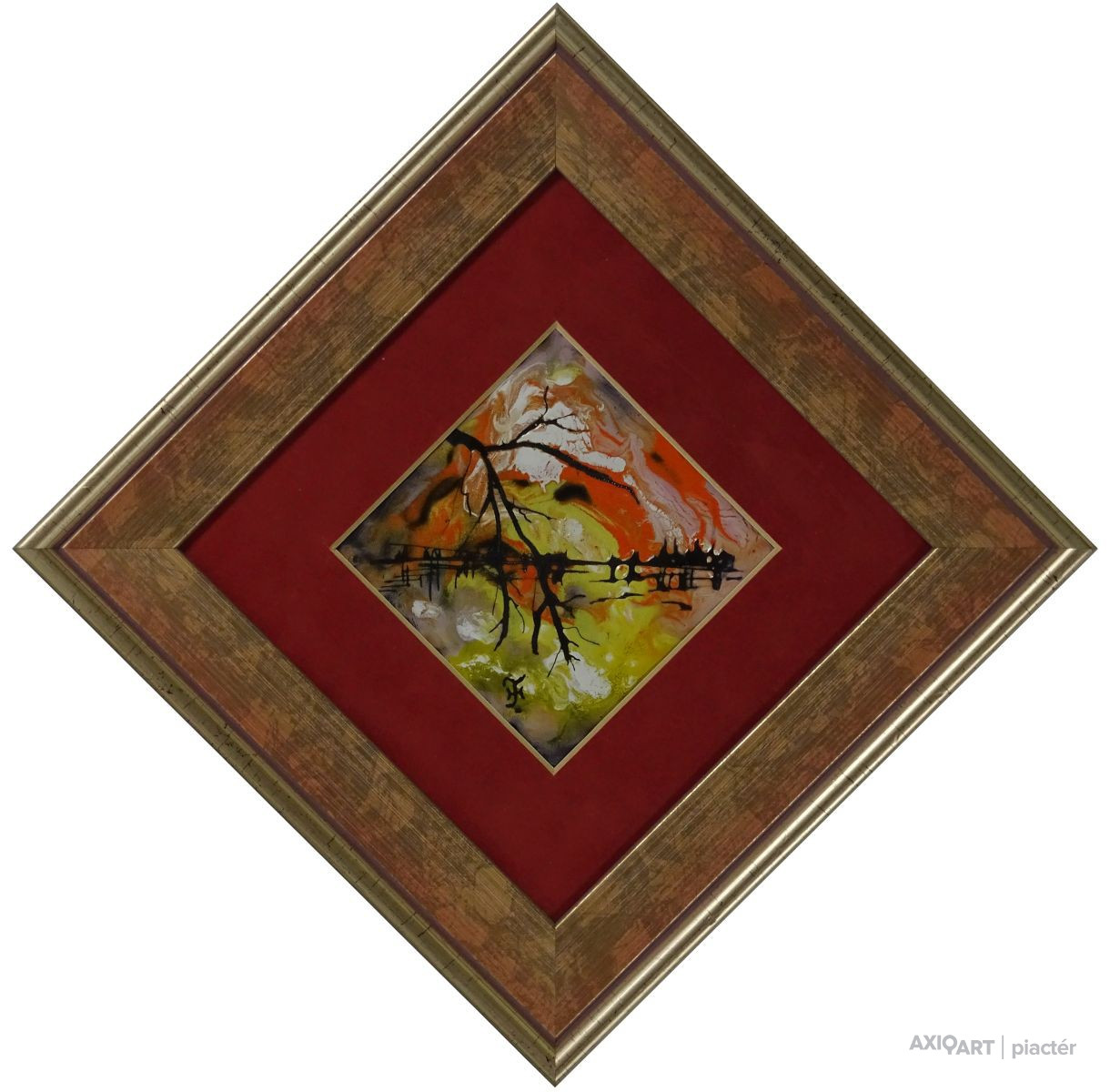 Keretezett tűzzománc kép színes paszpartuban. Akasztási lehetőséggel rendelkezik.
