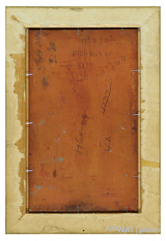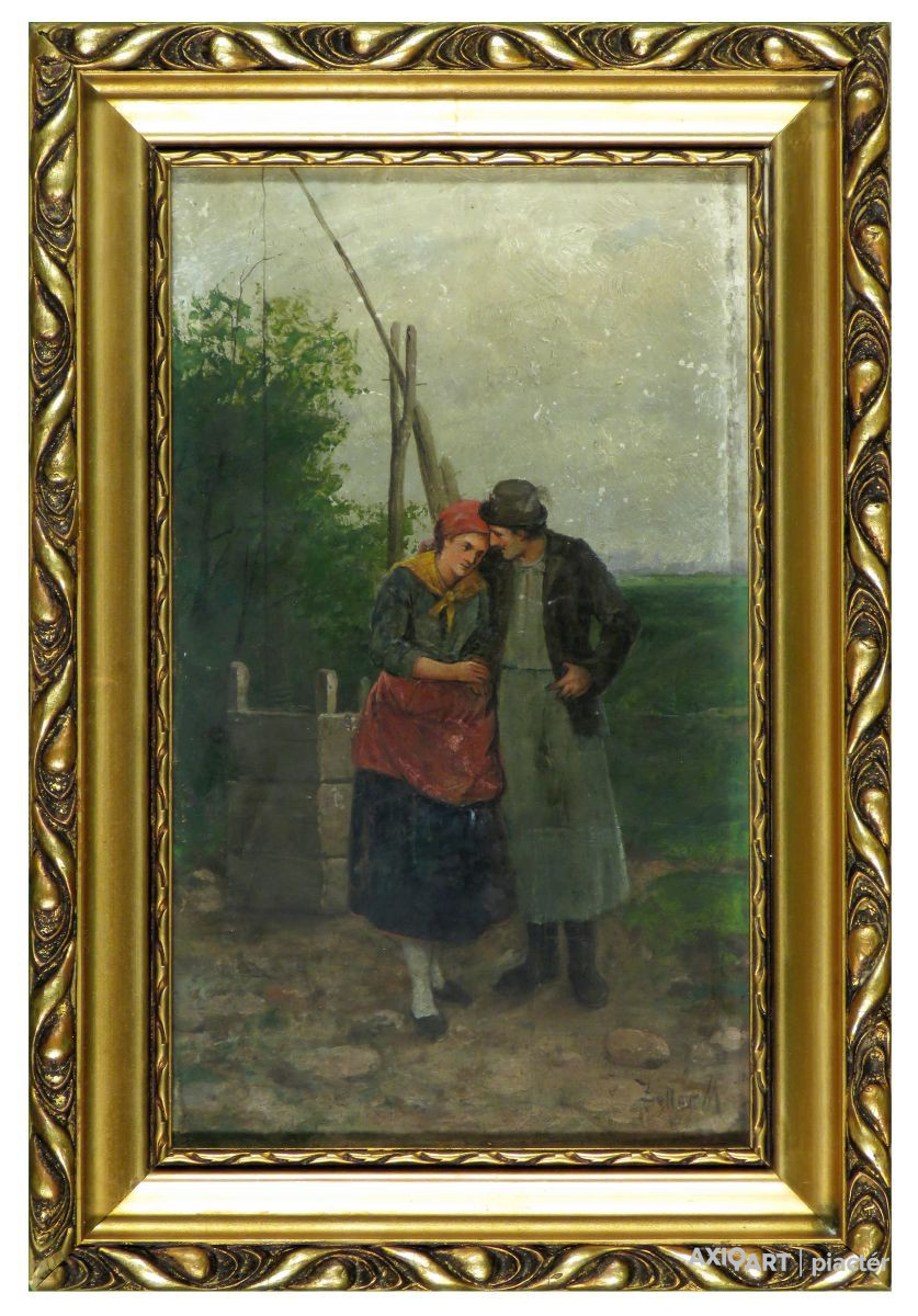 [FKB651/Z067] A kép mérete: 29 x 17 cm keret nélkül. Készült: Olaj, Falemez A kép Zeller Mihály (Nagypeleske, 1859) alkotása. Jelezve jobbra lent "Zeller M" A festmény jó állapotban van. Keret: Ép Magyar festők és grafikusok életrajzi lexikona I-II. Festő. A budapesti Mintarajziskolában, 1903-ban a nagybányai szabadiskolában, Münchenben és Berlinben végezte művészeti tanulmányait. Utóbb Párizsban is eltöltött egy évet. "Tisza partján" című képét 1906-ban Párizsban díszoklevéllel tüntették ki. 1908-ban Szatmárnémetiben kollektív kiállítást rendezett műveiből. Jelentősebb alkotásai: Sír a kislány a Balaton partján, Kertek alján, Áve Mária, stb. (Éber, RI-NM) Magyar festők és grafikusok adattára A Mintarajziskolában, Nagybányán és Berlinben tanult, utóbb Párizsban töltött egy évet. Tisza partján c. képét 1906-ban Párizsban díszoklevéllel tüntették ki. 1908-ban Szatmárnémetiben kollektív kiállítást rendezett műveiből. - MTA Magyar festők és grafikusok életrajzi lexikona I-II. Műgyűjtők és kereskedők kézikönyve Festő. A bp.-i Mintarajziskolában, Nagybányán, Münchenben és Berlinben végezte műv. tanulmányait. Utóbb Párizsban is töltött egy évet. "Tisza partján" c. képét 1906-ban Párizsban díszoklevéllel tüntették ki. 1908-ban Szatmárnémetiben koll. kiállítást rendezett műveiből. Jelentékenyebb alkotásai: Sír a kislány a Balaton partján, Kertek alján, Ave Maria. (Éber)