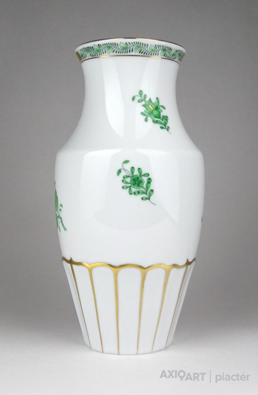 Hibátlan állapotú, zöld Apponyi mintával díszített Herendi porcelán váza.