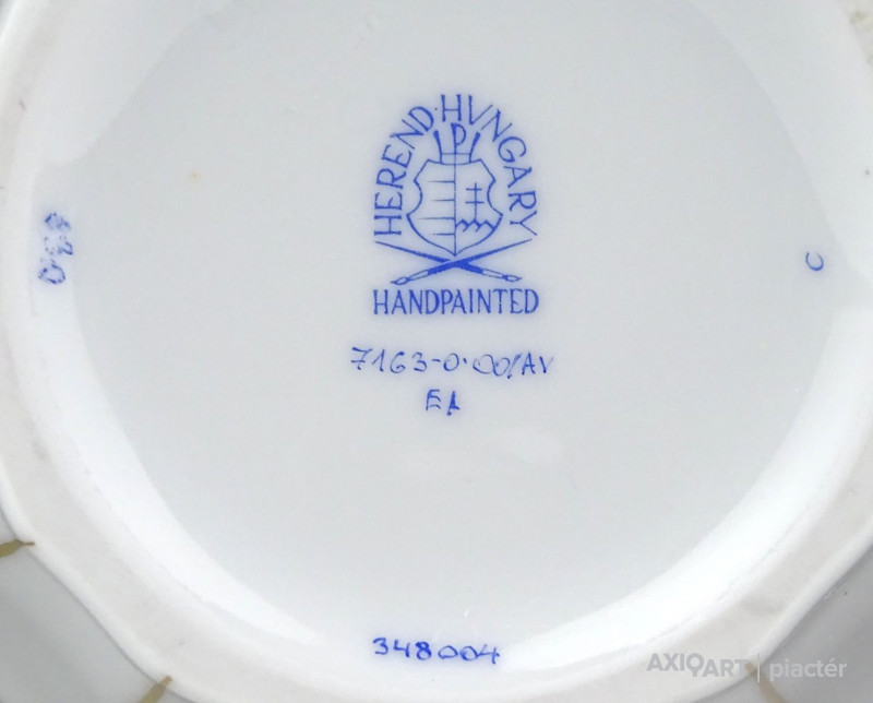 [1C777/BX-8] Hibátlan állapotú, zöld Apponyi mintával díszített Herendi porcelán váza. Alján kék Herendi jelzés: HEREND HUNGARY HANDPAINTED Formaszám kékkel: 7163/AV EA Mélynyomással: HEREND Aranyozása is kopásmentes, ajándékba adható! Magasság: 19.5 cm Szélesség: 9.5 cm Súly: 0.44 kg
