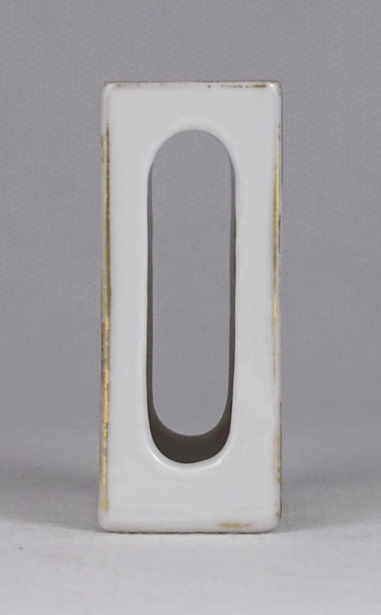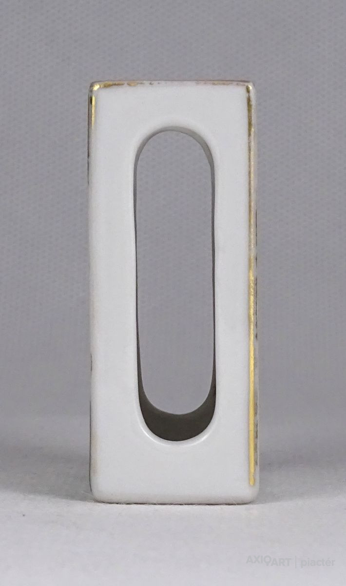 [1S419/Z034] Hibátlan állapotú, aranyozott Herendi porcelán gyufás skatulya tartó. Belsejében kék Herendi jelzés: HEREND HUNGARIA 1941 Formaszám: 7914 Díszítő motívum: ORV (D'or) Magasság: 6 cm Szélesség: 2.4 cm Hosszúság: 4.4 cm Súly: 0.045 kg