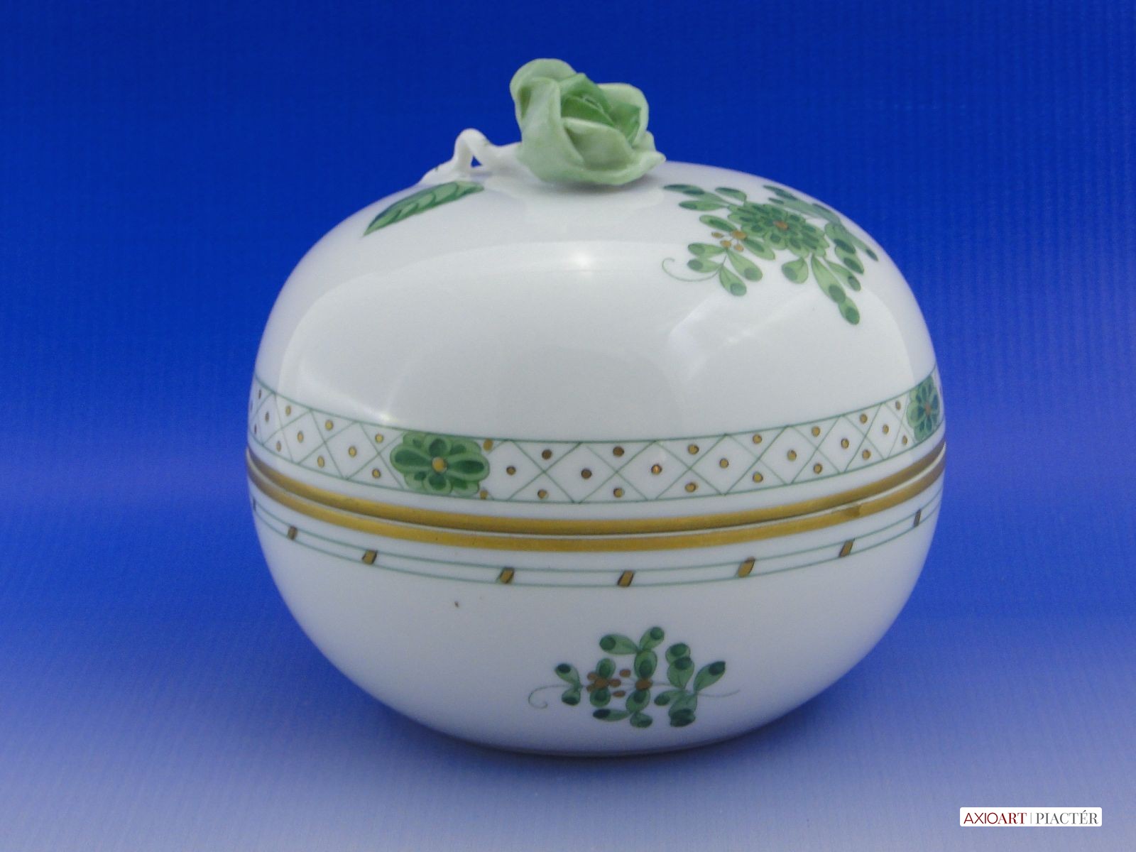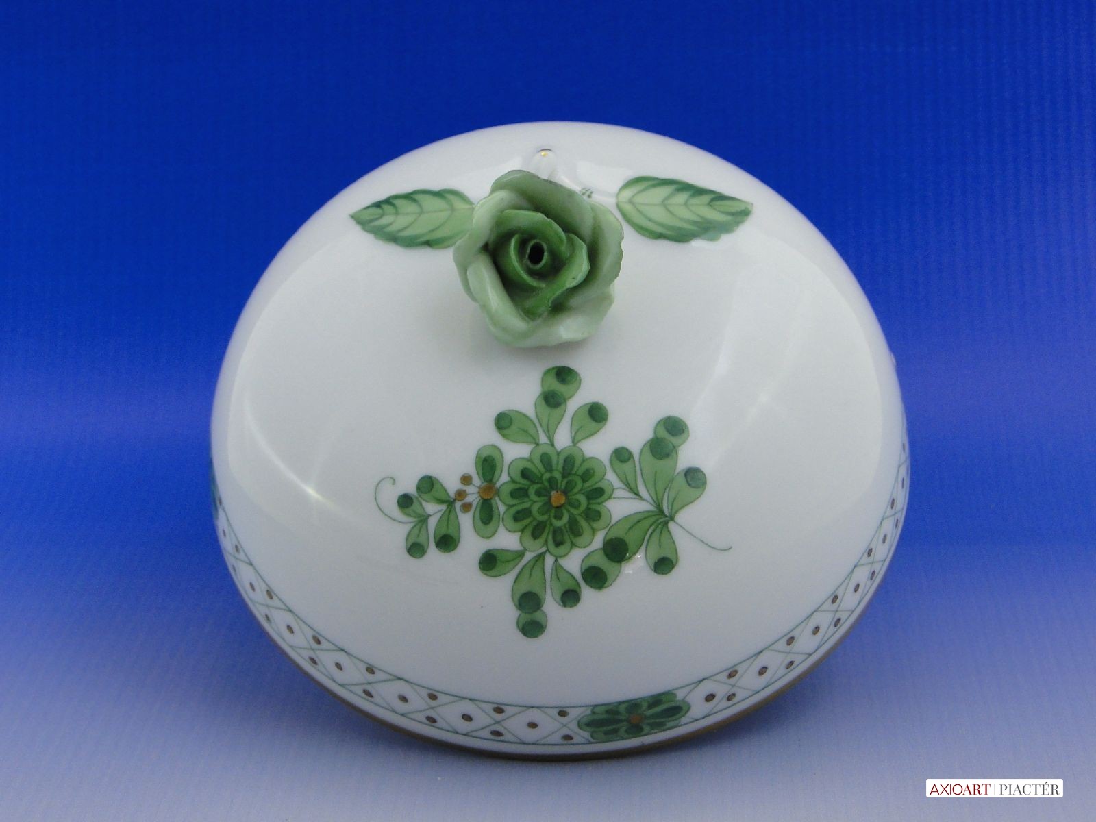 Közepes méretű herendi cukortartó, tetején rózsával,