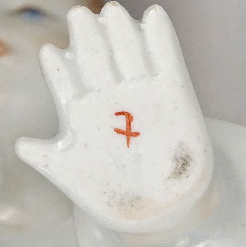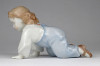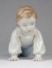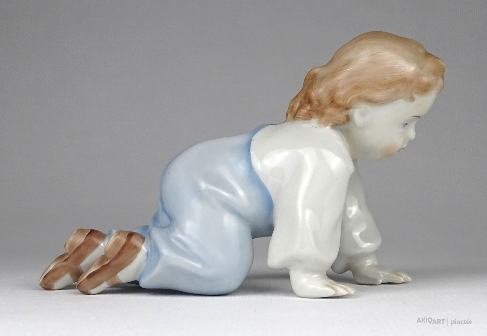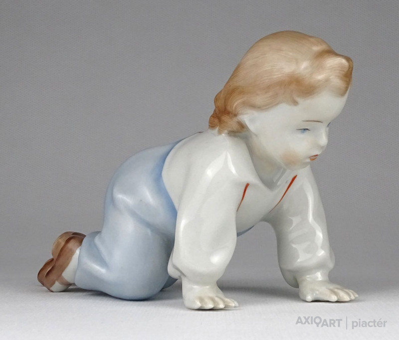 Kézi festésű Zsolnay porcelán figura, négykézláb mászó kislány.