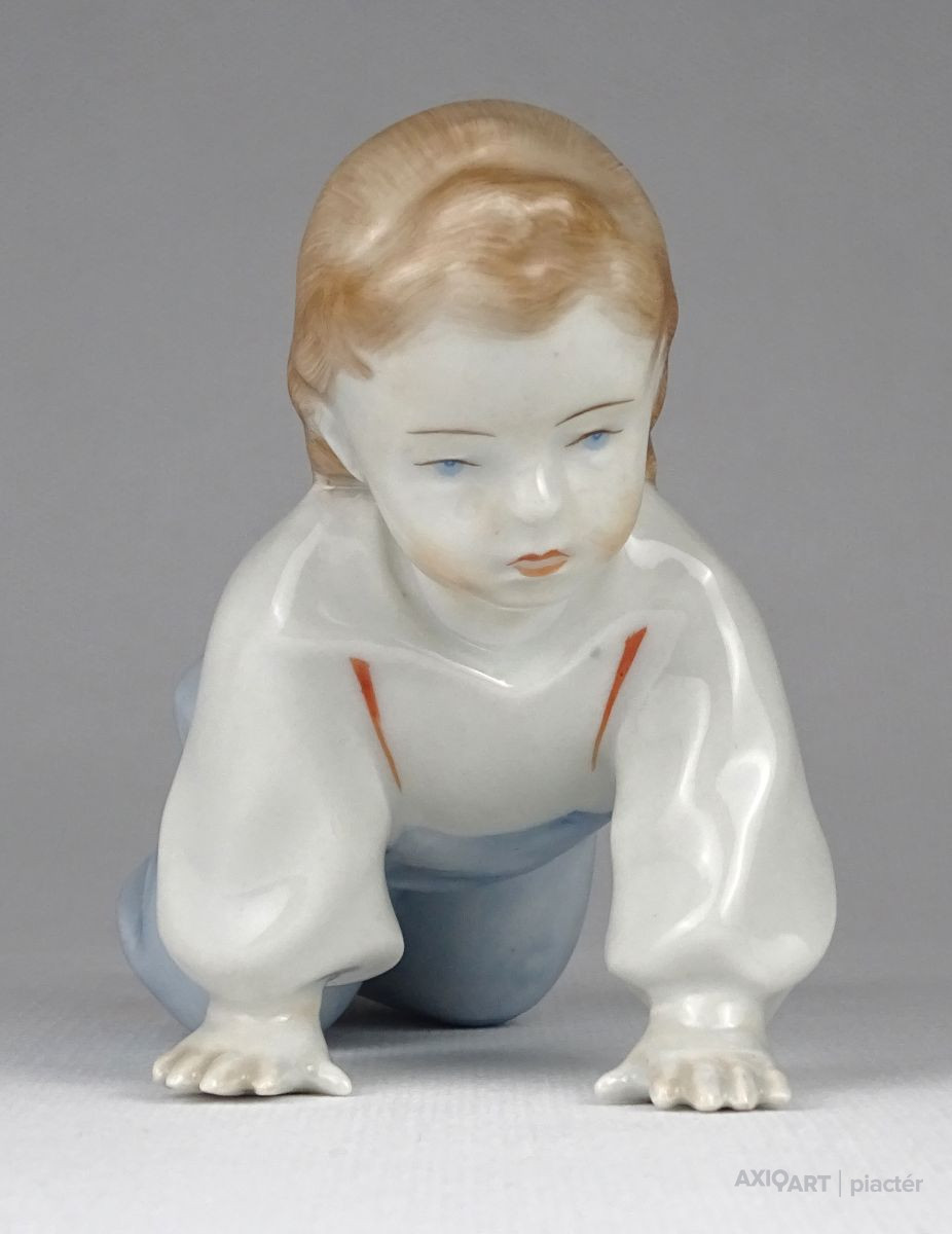 Zsolnay SINKÓ porcelán mászó kislány 15.5 cm