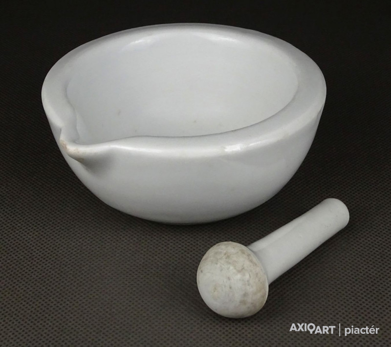 Antik fehér kisméretű Elbogen porcelán gyógyszerészeti patikamozsár